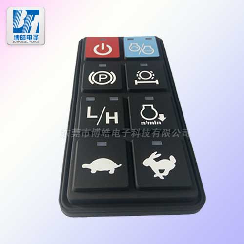 - 產(chǎn)品簡介:本款硅膠產(chǎn)品是重型機(jī)械設(shè)備控制硅膠按鍵,噴涂鐳雕透光工藝,采用環(huán)保硅膠原材料模壓成型。